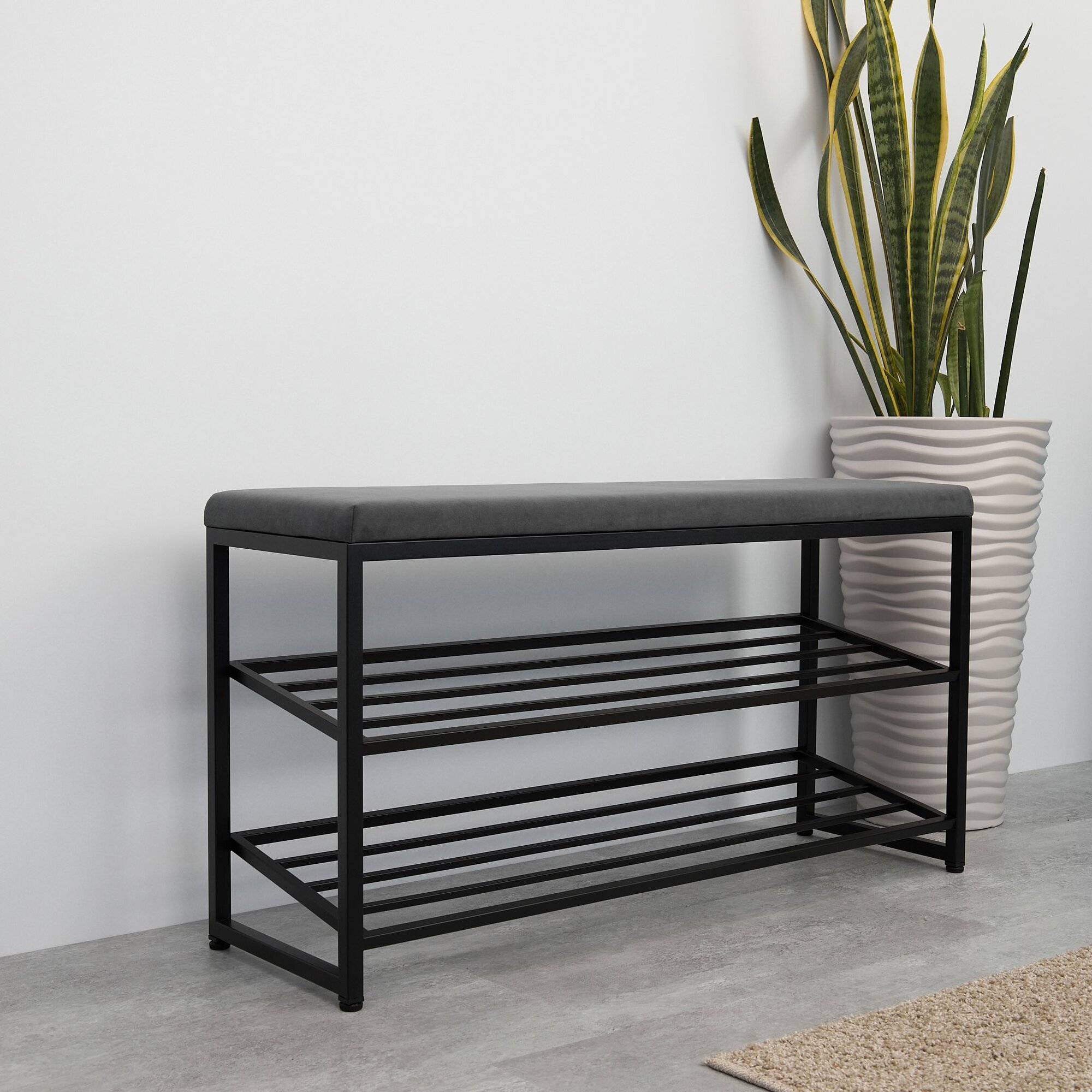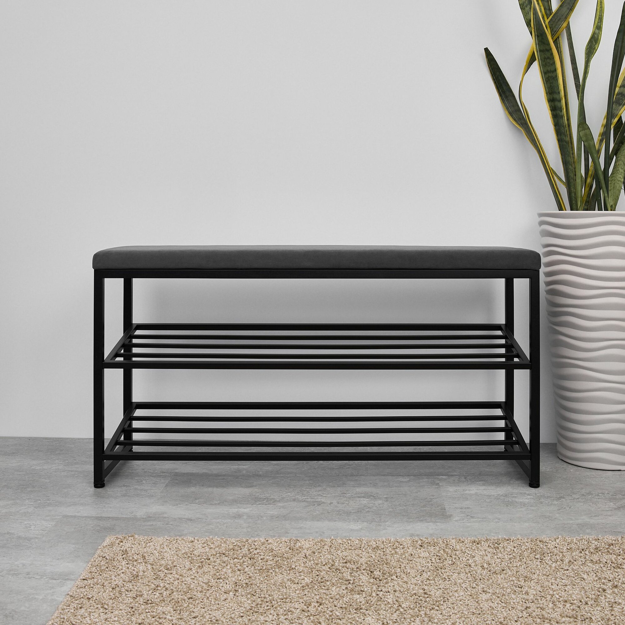 Купить Обувница с мягким сиденьем «Эмили» / 100х30х52см / черный каркас — графит велюр с доставкой по всей России.