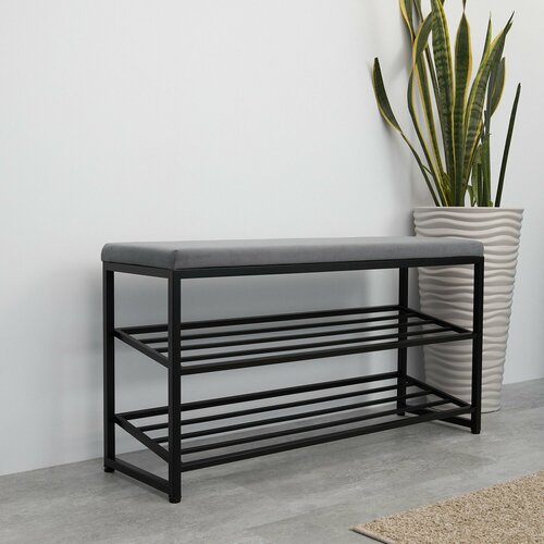 Купить Обувница с мягким сиденьем «Эмили» / 100х30х52см / черный каркас — темно-серый велюр с доставкой по всей России.
