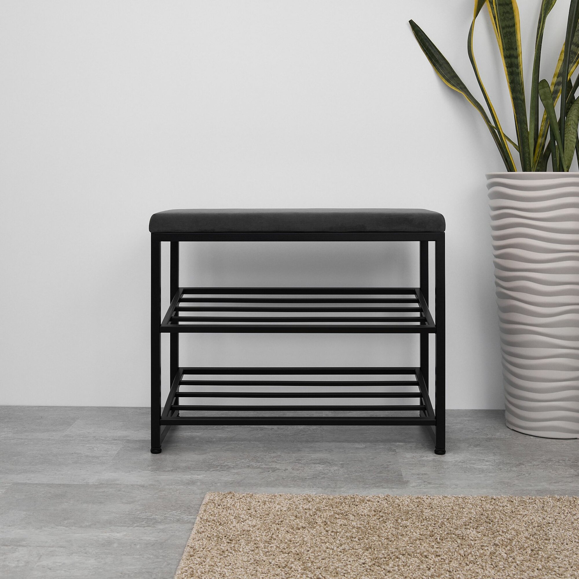 Купить Обувница с мягким сиденьем «Эмили» / 65х30х52см / черный каркас — графит велюр с доставкой по всей России.