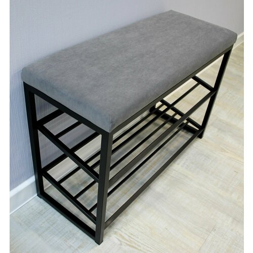 Купить Обувница с мягким сиденьем «Эмили» / 75х30х52см / черный каркас — графит велюр с доставкой по всей России.
