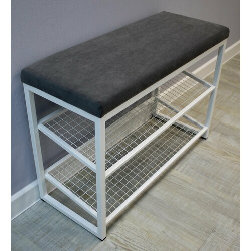 Купить Обувница с мягким сиденьем «Энни» / 55х30х52см / белый каркас — графит велюр с доставкой по всей России.