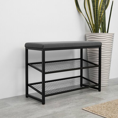 Купить Обувница с мягким сиденьем «Энни» / 75х30х52см / черный каркас — графит велюр с доставкой по всей России.