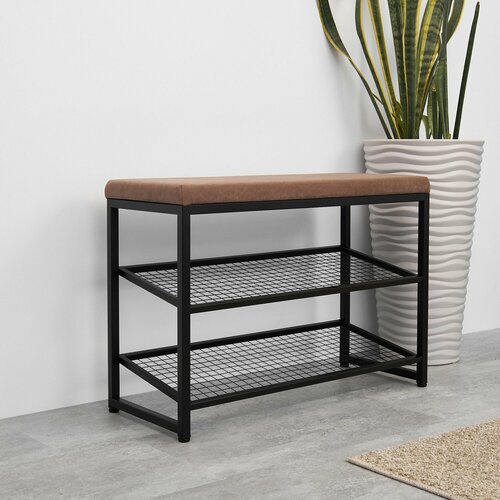 Купить Обувница с мягким сиденьем «Энни» / 75х30х52см / черный каркас — коричневый велюр с доставкой по всей России.