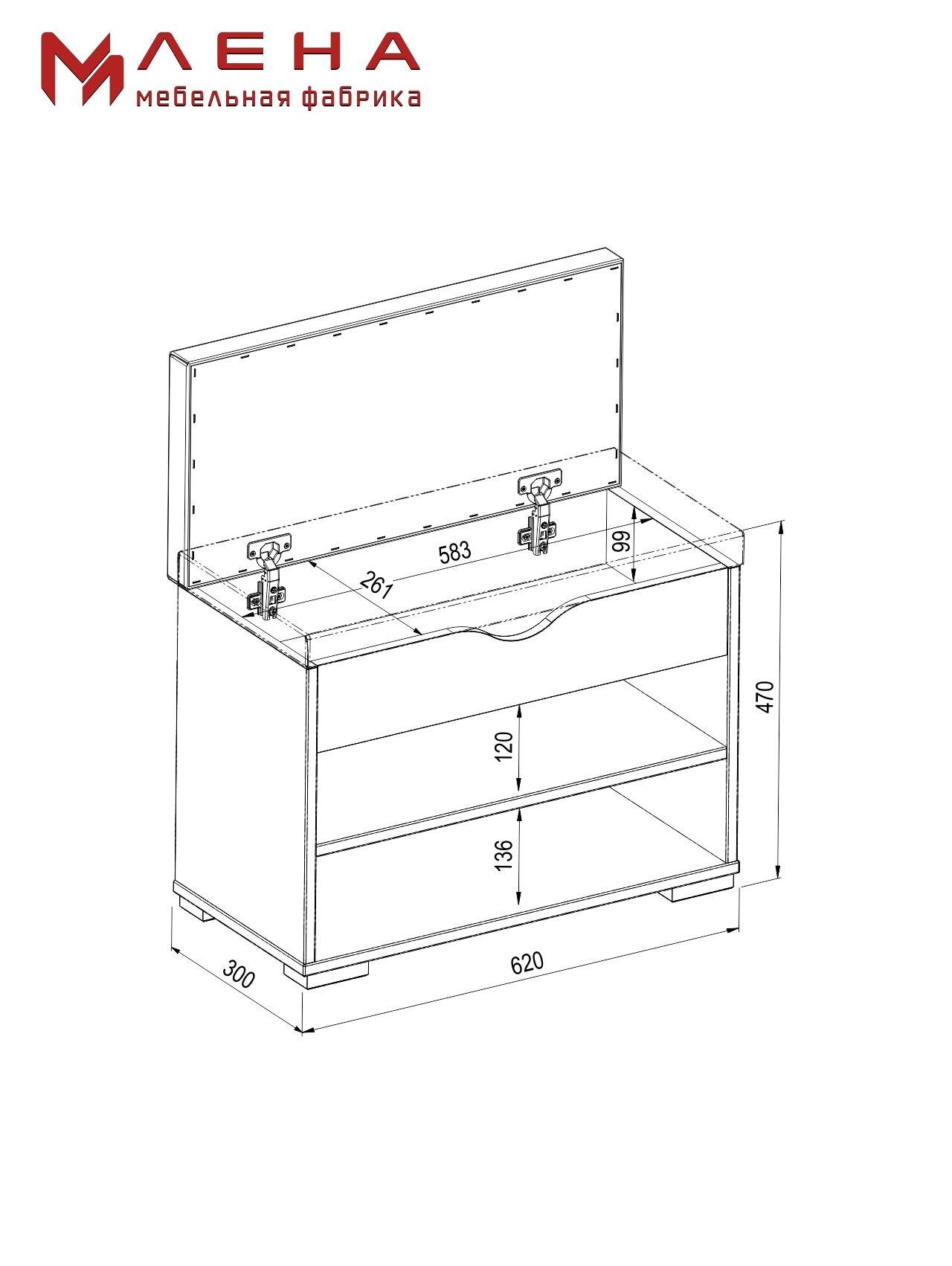 Купить Обувница с мягким сиденьем. Тумба для обуви. Мебельная фабрика ЛЕНА с доставкой по всей России.