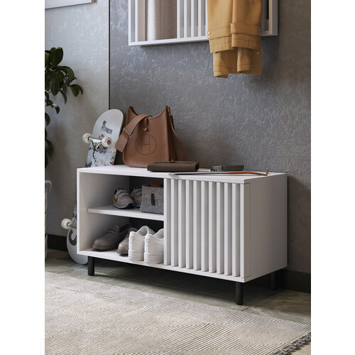 Современный дизайн с рейками придает этой обувнице элегантный и современный вид, который легко впишется в любой интерьер.