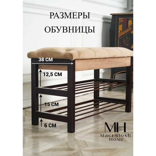 Шикарная стеганая обувница с ящиком, этажерка для обуви с сиденьем, скамья или галошница - отличный вариант для хранения обуви и повседневных вещей, а также удобный вариант для коридора, чтобы присесть, снять обувь и расположить ее на металлические полки. Достаточно вместительный ящик для хранения в который можно поместить аксессуары для обуви, зонт, ключи и любую другую мелочь. Компактные форма и размеры позволяют поставить обувницу не только в прихожей, но и в узком коридоре и на балконе, а также в гардеробной комнате и холле. Металлические полки для обуви это незаменимый предмет интерьера в квартире, в бане или на даче, который можно использовать в качестве банкетки, пуфика с ящиком для хранения в коридоре мелочей, документов, средств для ухода за обувью. Прочное сиденье с каретной стяжкой из приятного велюра у открытой обувницы обеспечит вам комфортное переобувание в гардеробной. Наши изделия подходят для интерьеров стиле лофт, классическом, современном, модерн. Полочки для обуви из металла с антикоррозионной порошковой покраской с защитой от влаги белого цвета и коричневого цвета представлены в трех цветах. Так же у нас вы можете приобрести в комплект и другую деревянную мебель в прихожую: зеркало настенное, тумбу узкую, тумбу комод в прихожую под обувь (для обуви подставка) без мягкого сиденья, напольная вешалка, навесную вешалку. И у вас получится роскошный комплект в прихожую, но в современном стиле минимализм, лофт. Станет отличным подарком маме, папе, бабушке, дедушке, свекрови, другу и подруге на новоселье, день рождения, или без повода порадовать дорогих людей. Наши изделия подходят для интерьеров стиле лофт, классическом, современном, модерн, минимализм. Ножки у обувницы выполнены из бука, полки из металла, ящик из качественного ЛДСП, а мягкое стеганное сиденье из роскошного и приятно велюра, который вы можете прочистить губкой или легкой влажной уборкой. Обувница стеганая с мягким сиденьем имеет следующие размеры: длина 830 мм, ширина 520 мм, глубина 380 мм. Обувница с ящиком приходит в разобранном виде, но благодаря инструкции и всем необходимым креплениям ее очень легко собрать. С такой обувницей любая прихожая станет стильной, незабываемой. Кроме того, наша мебель прослужит Вам долго благодаря нашему особому подходу при создании и производстве мебели только из натуральных и качественных компонентов, чтобы дизайн и функциональность изделий были на высшем уровне по доступной цене. Наша мебельная фабрика и бренд Macentosh Home станет лучшим другом и приятным дополнением к Вашему дому. Мы уверены, что Вы останетесь довольны своей покупкой оценив качество нашего товара!