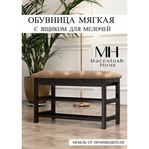 Шикарная обувница, этажерка для обуви с сиденьем, скамья или галошница - отличный вариант для хранения обуви и повседневных вещей, а также удобный варианта для коридора, чтобы присесть, снять обувь и расположить ее на металлические полки. Достаточно вместительный ящик для хранения в который можно поместить аксессуары для обуви, зонт, ключи и любую другую мелочь. Компактные форма и размеры позволяют поставить обувницу не только в прихожей, но и в узком коридоре и на балконе, а также в гардеробной комнате и холле. Металлические полки для обуви это незаменимый предмет интерьера в квартире, в бане или на даче, который можно использовать в качестве банкетки, пуфика с ящиком для хранения в коридоре мелочей, документов, средств для ухода за обувью. Прочное сиденье с каретной стяжкой из приятного велюра у открытой обувницы обеспечит вам комфортное переобувание в гардеробной. Наши изделия подходят для интерьеров стиле лофт, классическом, современном, модерн. Полочки для обуви из металла с антикоррозионной порошковой покраской с защитой от влаги белого цвета и коричневого цвета представлены в трех цветах. Так же у нас вы можете приобрести в комплект и другую деревянную мебель в прихожую: зеркало настенное, тумбу узкую, тумбу комод в прихожую под обувь (для обуви подставка) без мягкого сиденья, напольная вешалка, навесную вешалку. И у вас получится роскошный комплект в прихожую, но в современном стиле минимализм, лофт. Станет отличным подарком маме, папе, бабушке, дедушке, свекрови, другу и подруге на новоселье, день рождения, или без повода порадовать дорогих людей. Наши изделия подходят для интерьеров стиле лофт, классическом, современном, модерн, минимализм. Ножки у обувницы выполнены из бука, полки из металла, ящик из качественного ЛДСП, а мягкое стеганное сиденье из роскошного и приятно велюра, который вы можете прочистить губкой или легкой влажной уборкой. Обувница стеганая с мягким сиденьем имеет следующие размеры: длина 830 мм, ширина 520 мм, глубина 380 мм. Обувница с ящиком приходит в разобранном виде, но благодаря инструкции и всем необходимым креплениям ее очень легко собрать. С такой обувницей любая прихожая станет стильной, незабываемой. Кроме того, наша мебель прослужит Вам долго благодаря нашему особому подходу при создании и производстве мебели только из натуральных и качественных компонентов, чтобы дизайн и функциональность изделий были на высшем уровне по доступной цене. Наша мебельная фабрика и бренд Macentosh Home станет лучшим другом и приятным дополнением к Вашему дому. Мы уверены, что Вы останетесь довольны своей покупкой оценив качество нашего товара!