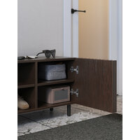 Обувница Топ Венге выполнена в современном стиле и имеет темно-коричневый цвет, что делает ее подходящей для любого интерьера.