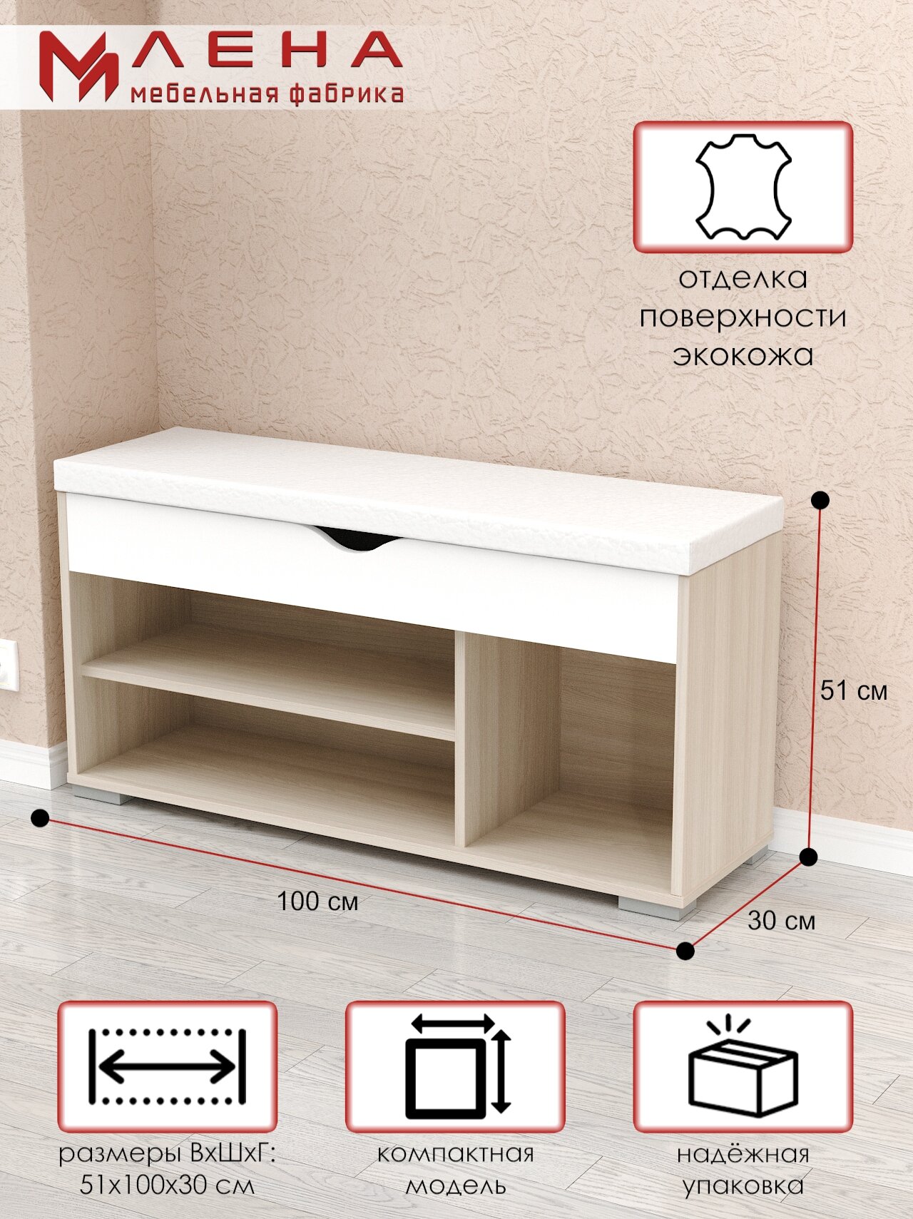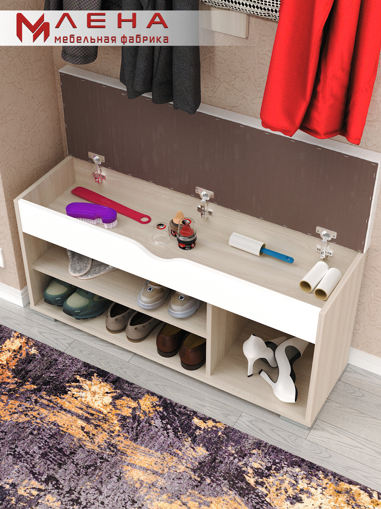 Обувница, тумба для обуви с мягким сиденьем в цвете ясень шимо светлый/белый. Мебельная фабрика лена: сравнение цен, характеристики, фото, актуальное наличие и цены.