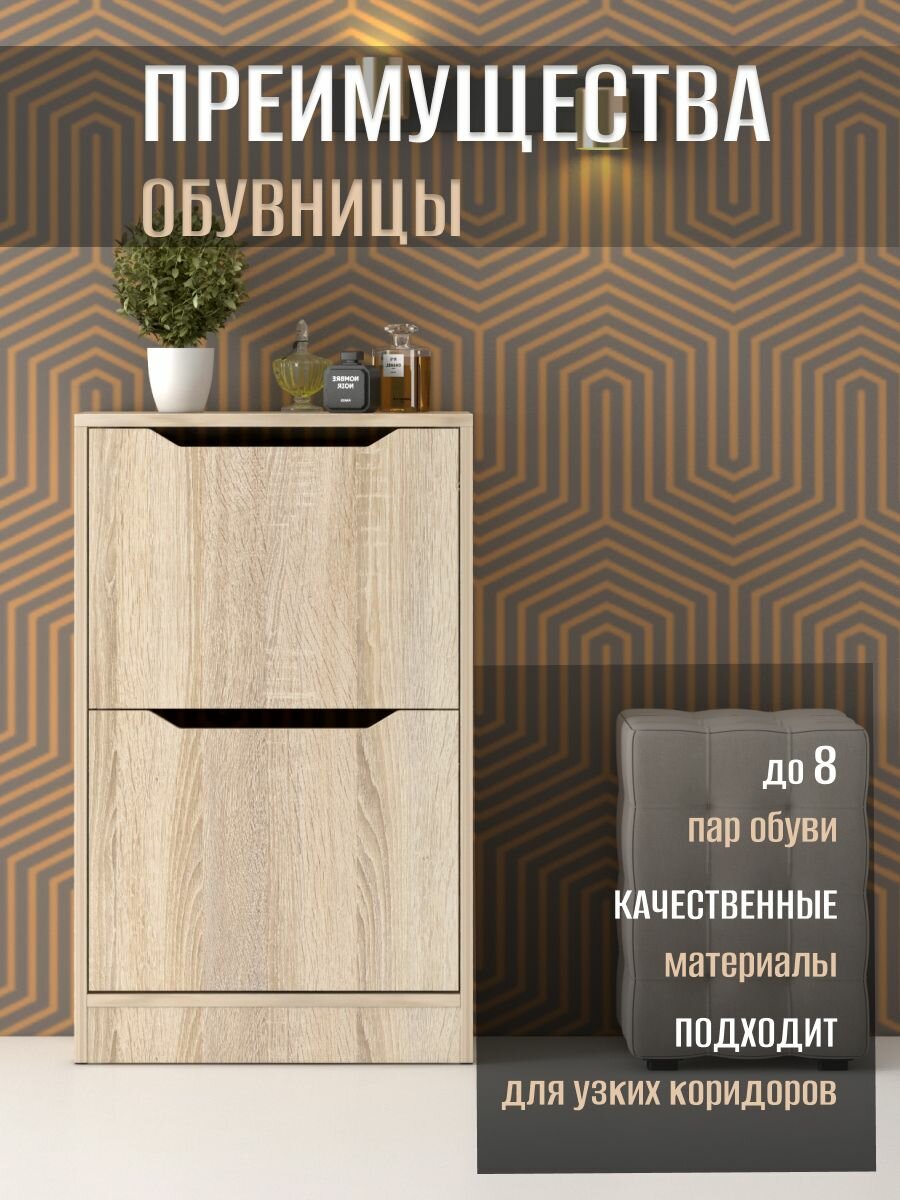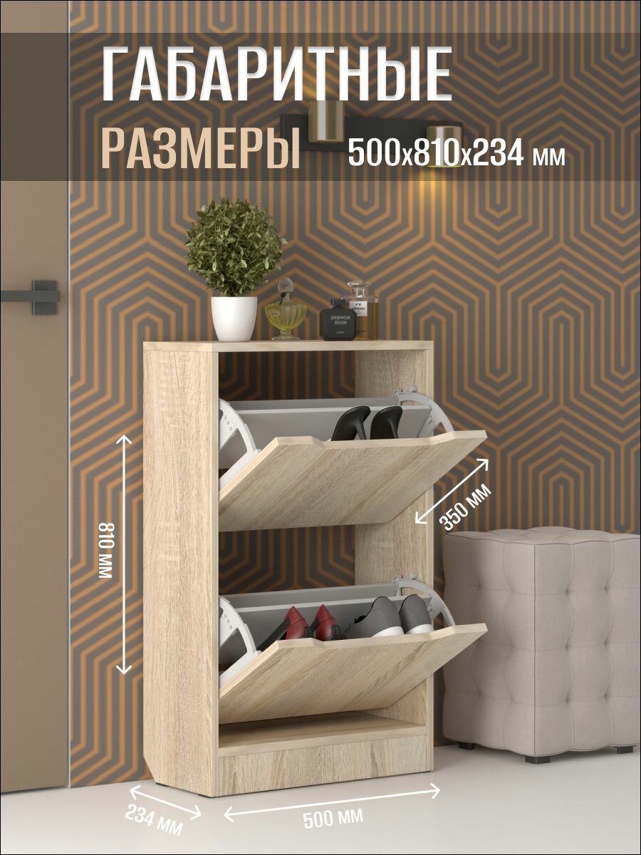 Купить Обувница узкая для прихожей Прима, 2 ящика, Дуб сонома, 50х24х81 см с доставкой по всей России. Обувница узкая для прихожей Прима, 2 ящика, Дуб сонома, 50х24х81 см: сравнение цен, характеристики, фото, актуальное наличие и цены.