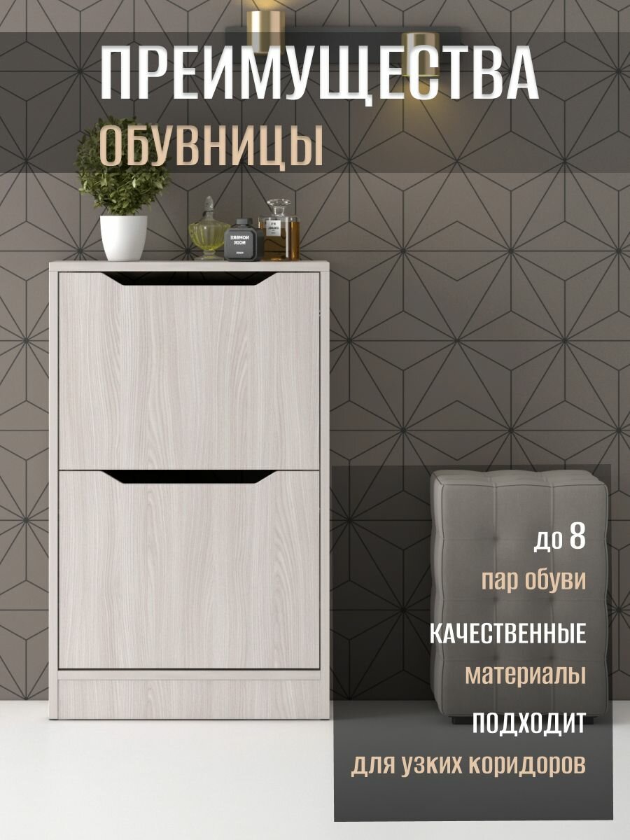 Обувница узкая для прихожей Прима, 2 ящика, Ясень шимо светлый, 50х24х81 см: сравнение цен, характеристики, фото, актуальное наличие и цены.