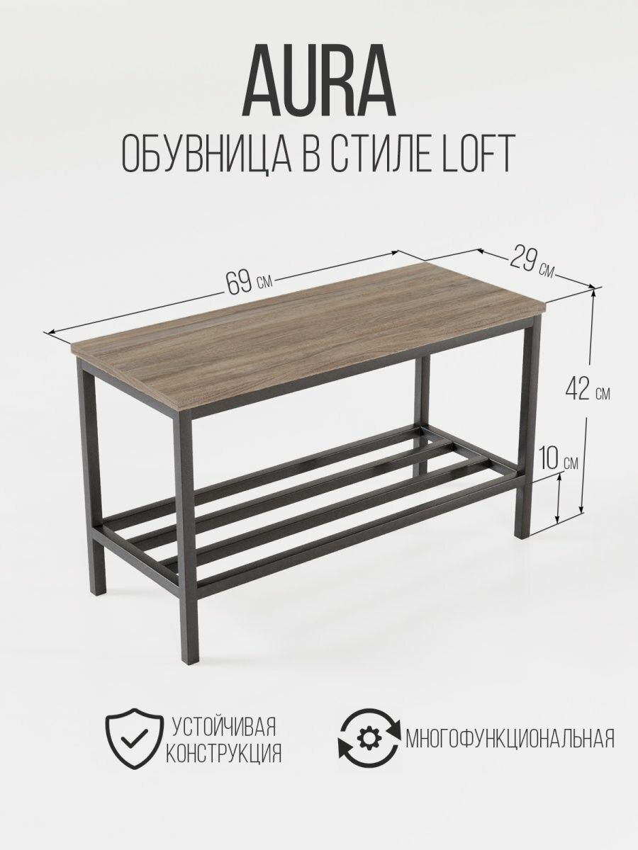 Обувница в прихожую «IamLoft» с сиденьем, 69х29х42см, металл, лдсп, дуб эвок: сравнение цен, характеристики, фото, актуальное наличие и цены.