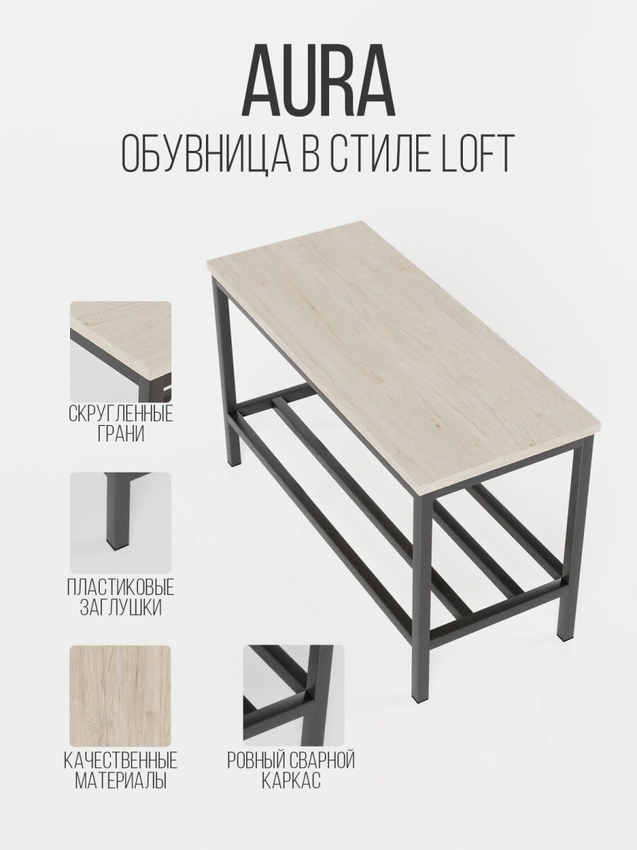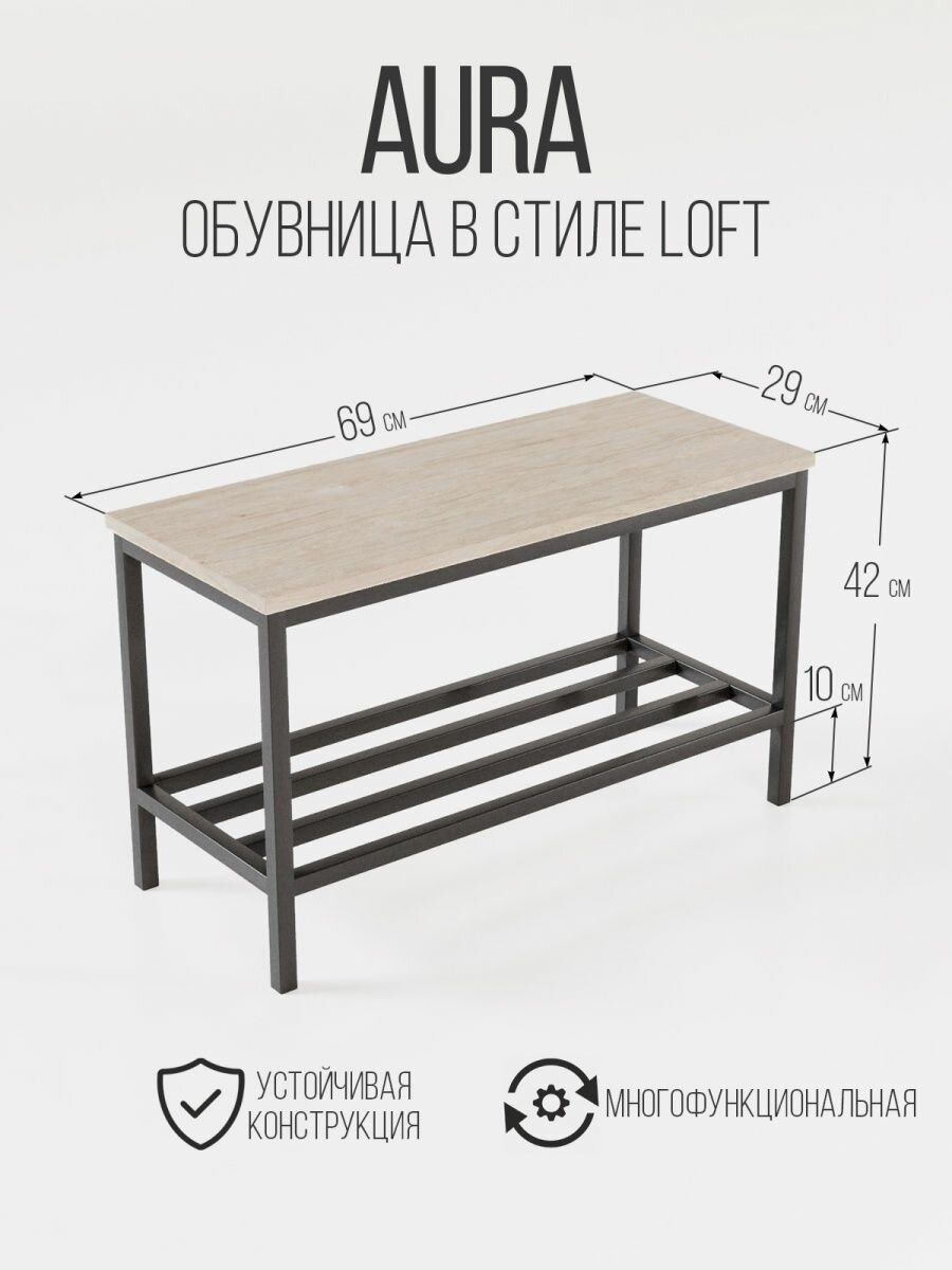 Обувница в прихожую «IamLoft» с сиденьем, 69х29х42см, металл, лдсп, дуб молочный: сравнение цен, характеристики, фото, актуальное наличие и цены.