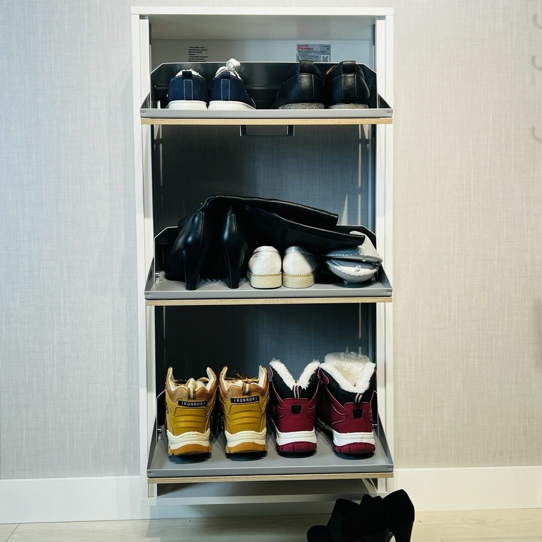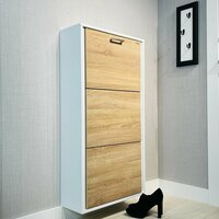Купить Обувница в прихожую IRONNORI Лайт 3 секции, Белый/Дуб Сонома, профиль белый, 104х54.5х20 см с доставкой по всей России.