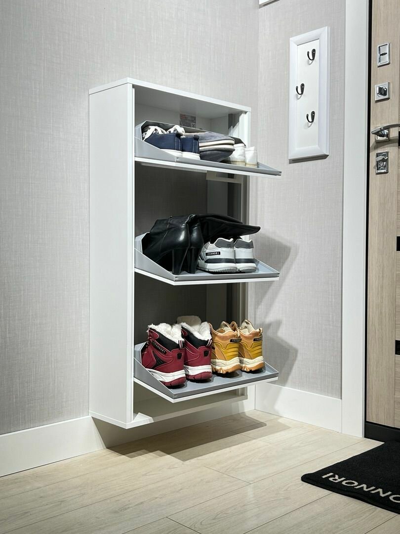 Обувница в прихожую IRONNORI Лайт 3 секции, Белый Шагрень, профиль белый, 104х54.5х20 см: сравнение цен, характеристики, фото, актуальное наличие и цены.