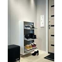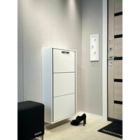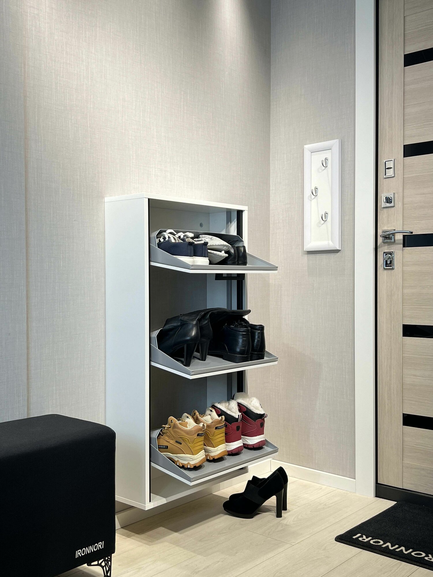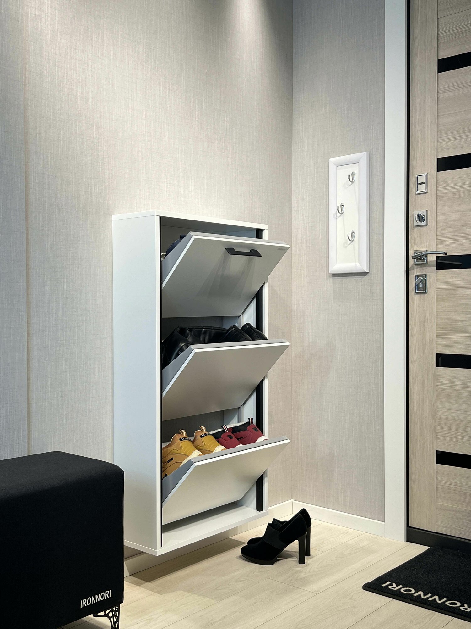 Обувница в прихожую IRONNORI Лайт 3 секции, Белый Шагрень, профиль чёрный, 104х54.5х20 см: сравнение цен, характеристики, фото, актуальное наличие и цены.