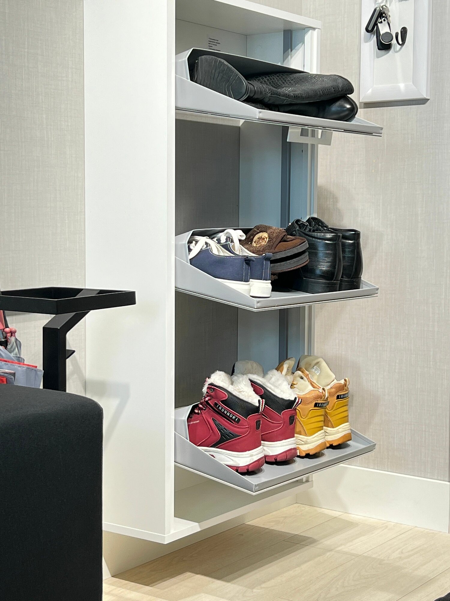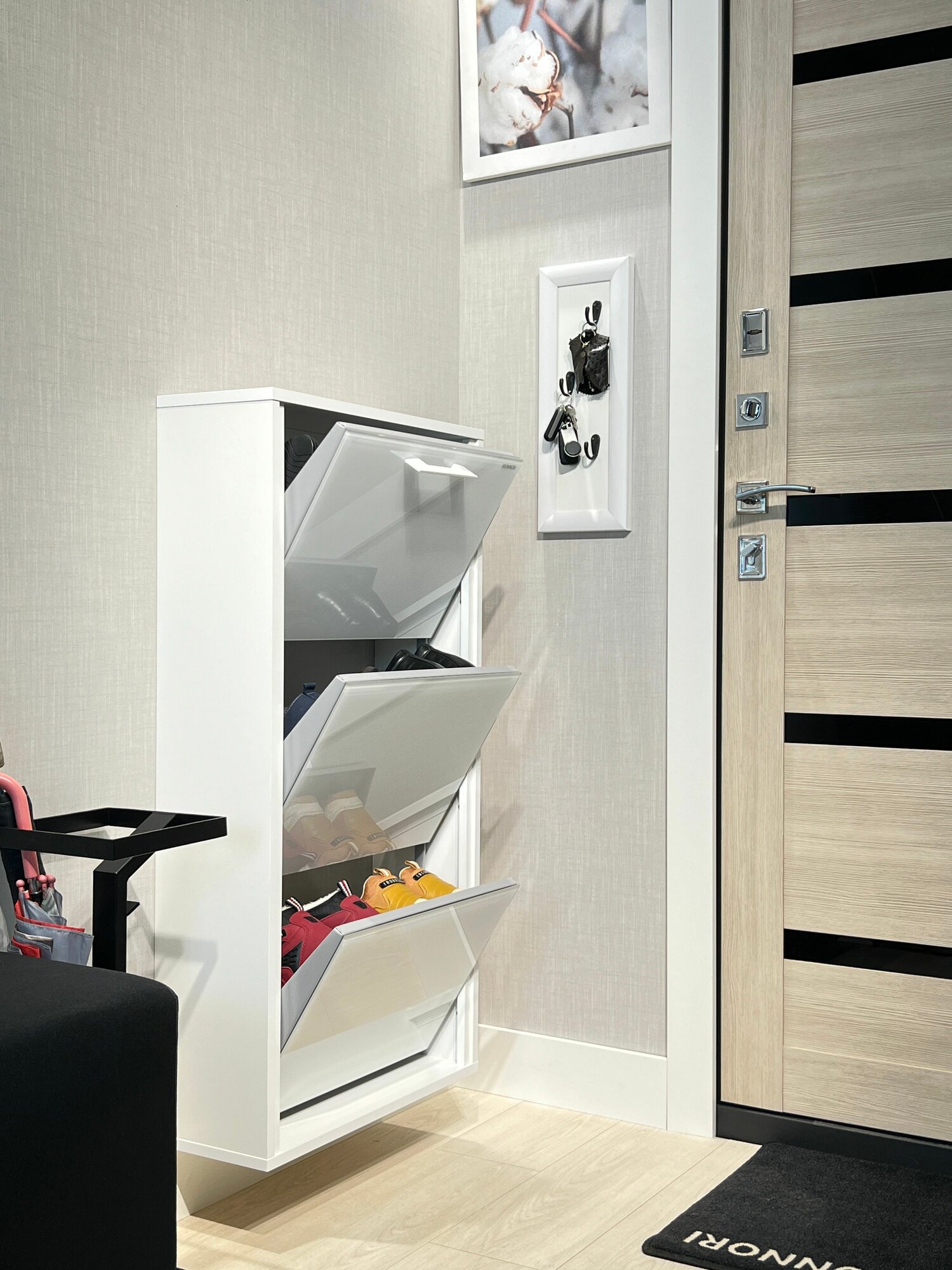 Обувница в прихожую IRONNORI Лайт 3 секции, Белый/стекло белое, профиль белый, 104х54.5х20 см: сравнение цен, характеристики, фото, актуальное наличие и цены.
