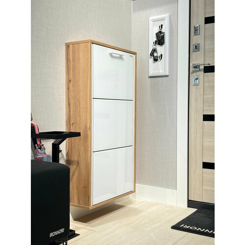 Обувница в прихожую IRONNORI Лайт 3 секции, Дуб Вотан/стекло белое, профиль белый, 104х54.5х20 см: сравнение цен, характеристики, фото, актуальное наличие и цены.