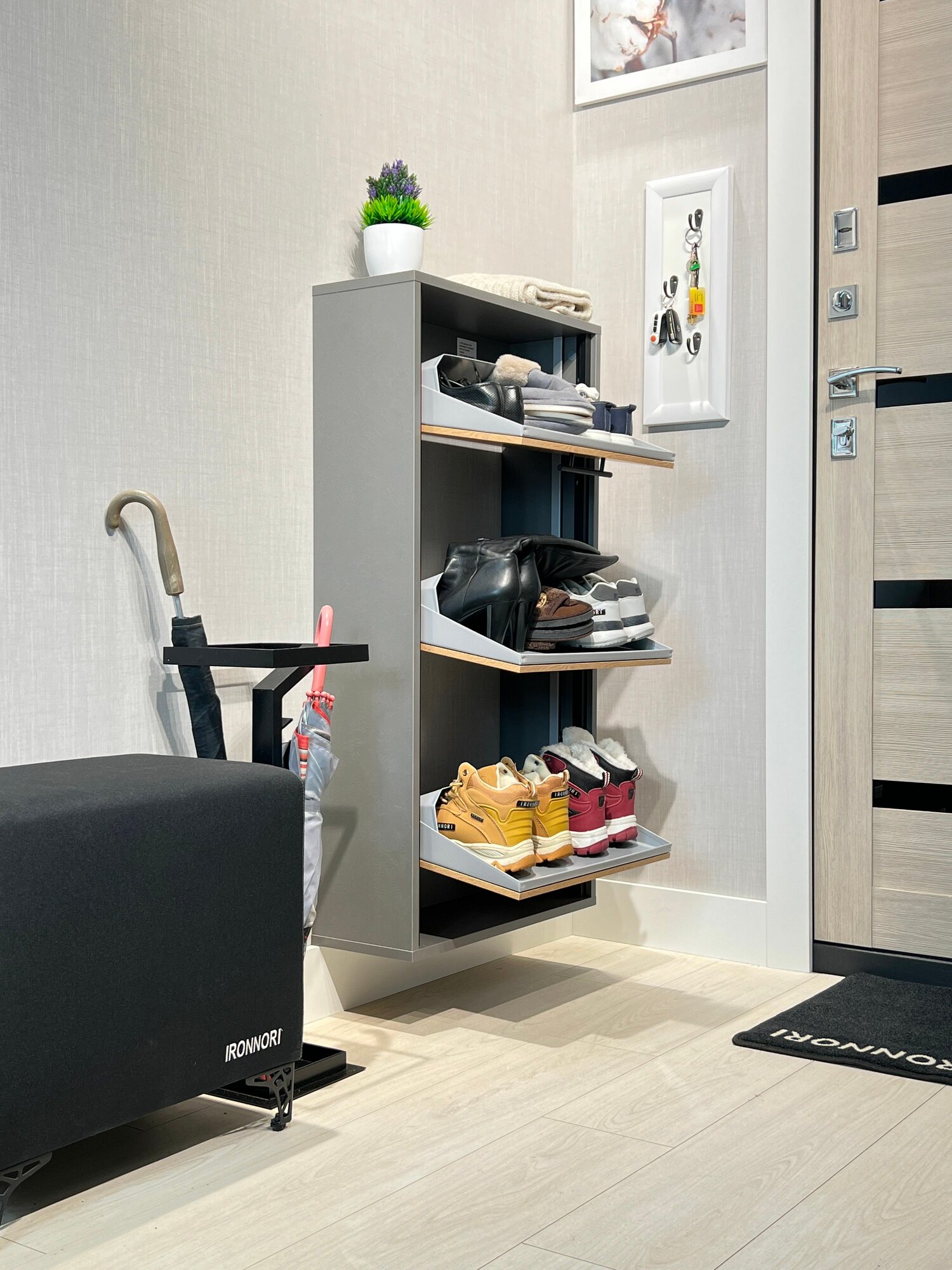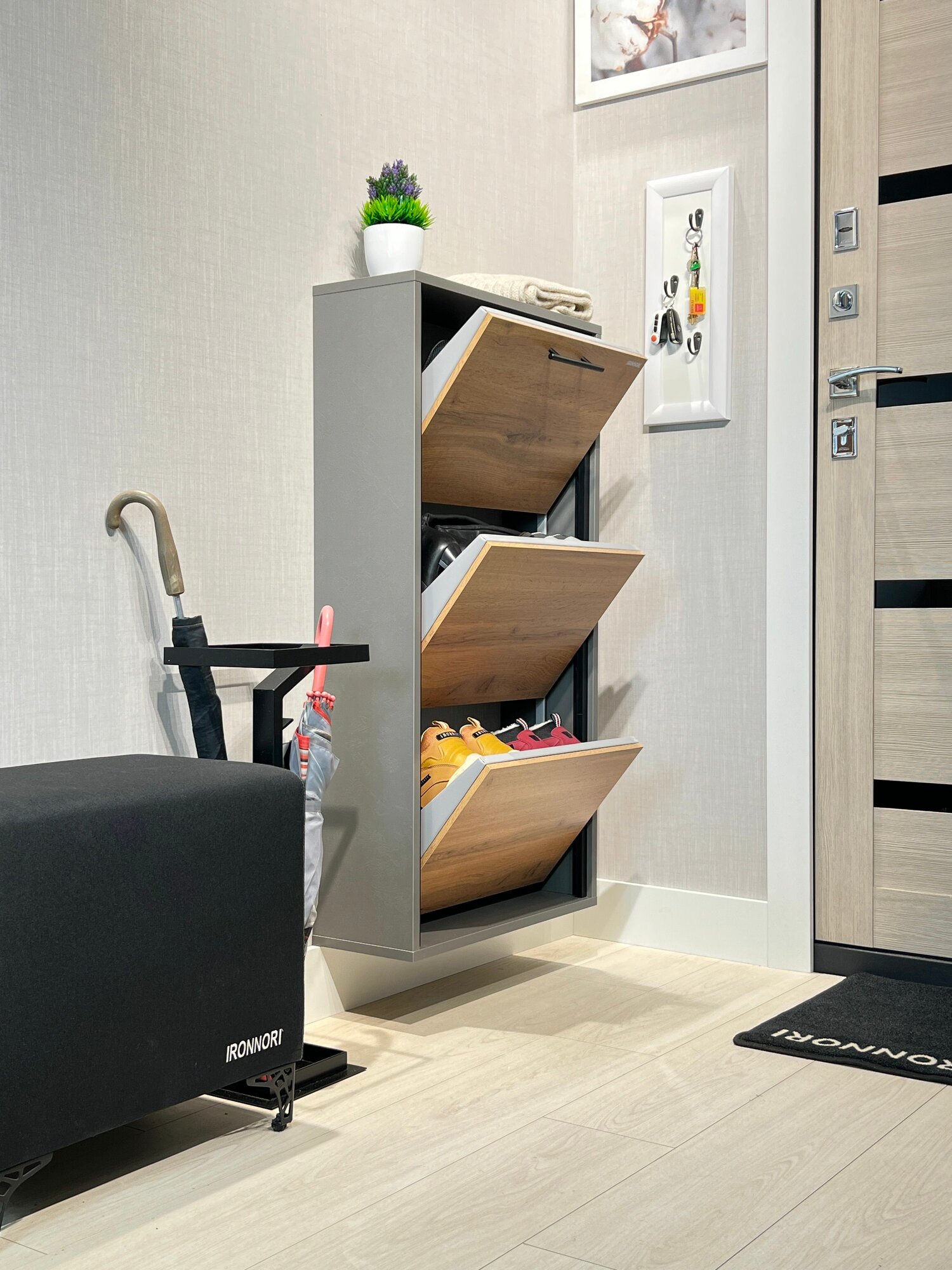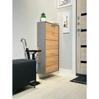 Обувница в прихожую IRONNORI Лайт 3 секции, Лофт/Дуб Вотан, профиль чёрный 104х54.5х20 см: сравнение цен, характеристики, фото, актуальное наличие и цены.