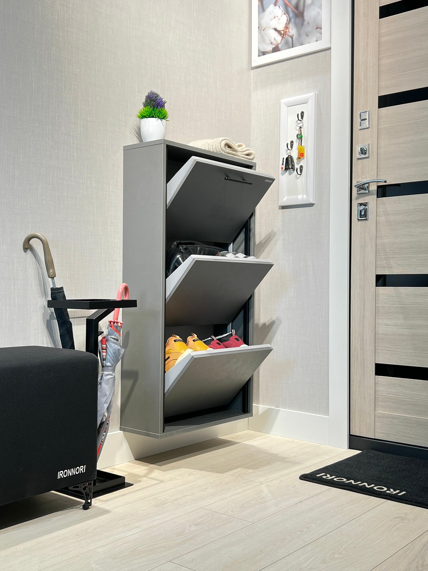 Обувница в прихожую IRONNORI Лайт 3 секции, Серый Лофт, профиль чёрный 104х54.5х20 см: сравнение цен, характеристики, фото, актуальное наличие и цены.