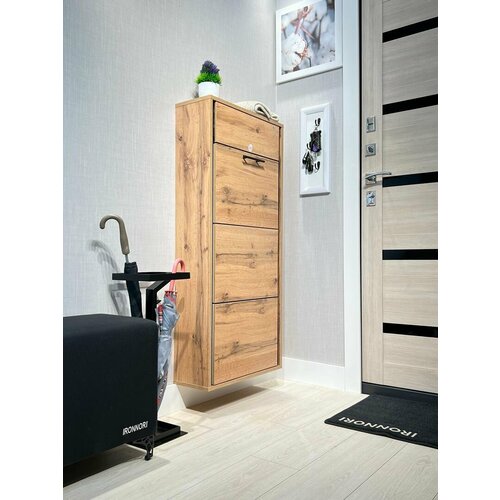 Обувница в прихожую IRONNORI Лайт Плюс 3 секции, Дуб Вотан, профиль чёрный, 121х54.5х20 см: сравнение цен, характеристики, фото, актуальное наличие и цены.