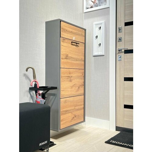 Обувница в прихожую IRONNORI Лайт Плюс 3 секции, Лофт/Дуб Вотан, профиль чёрный, 121х54.5х20 см: сравнение цен, характеристики, фото, актуальное наличие и цены.