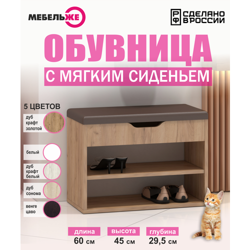 Обувница в прихожую «Лаки 1» (полка для обуви «Лаки 1») Дуб Крафт Золотой/Экокожа Коричневая: сравнение цен, характеристики, фото, актуальное наличие и цены.