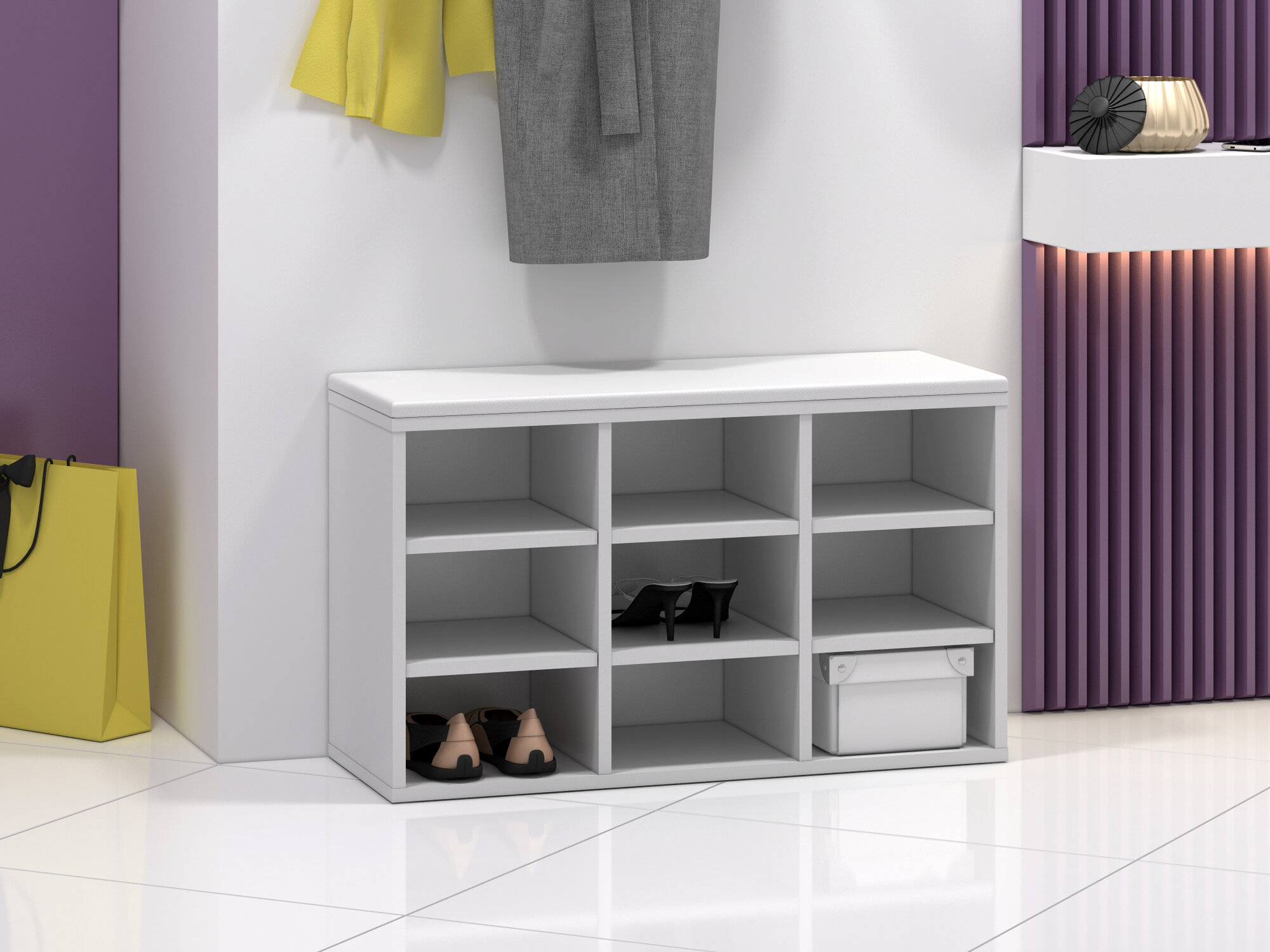 Обувница в прихожую, Лаки 4, ЛДСП, полка для обуви с мягким сидением, Белый/Экокожа Белая: сравнение цен, характеристики, фото, актуальное наличие и цены.