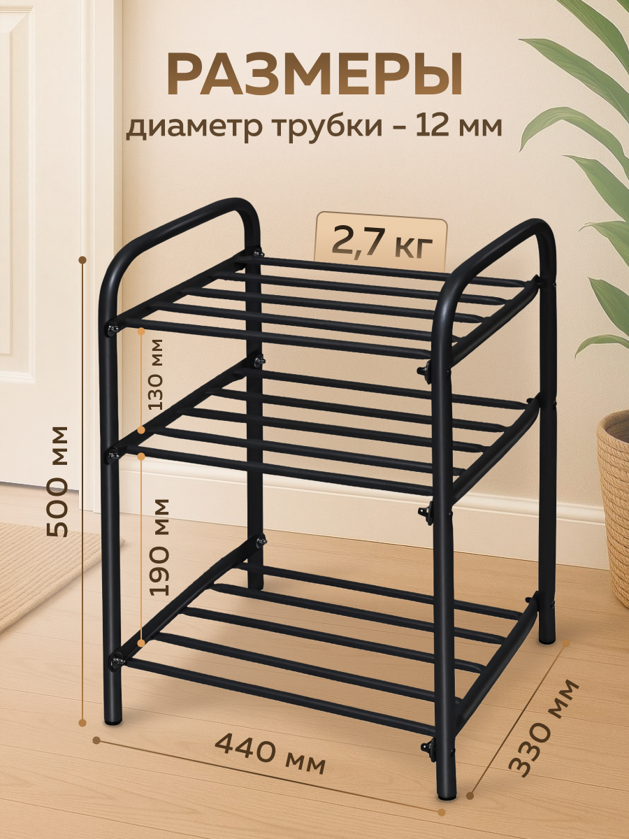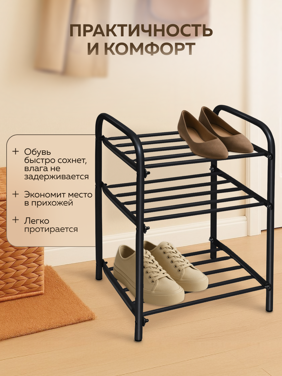 Обувница в прихожую Ника ЭТК1Ч, металл/пластик, черная, 44 см x 33 см x 50 см, 3 яруса: сравнение цен, характеристики, фото, актуальное наличие и цены.