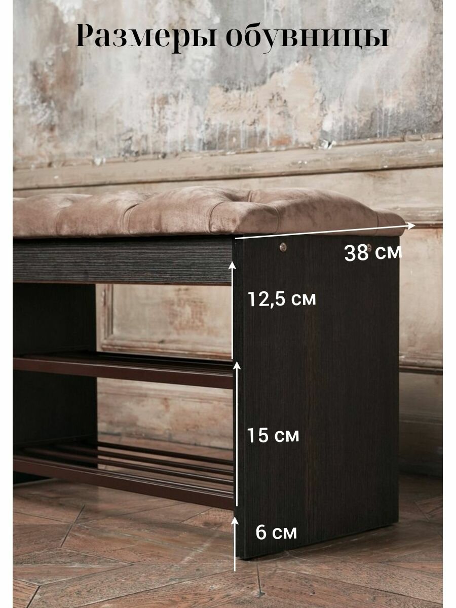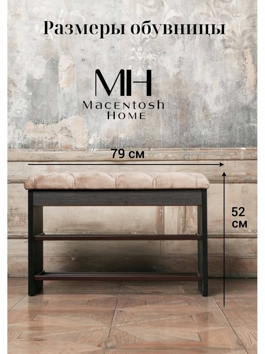 Представляем вам обувницу в прихожую от бренда Macentosh Home, которая сочетает в себе стиль, функциональность и уют! Эта модель в темно коричневом цвете станет настоящим украшением вашего интерьера и отлично впишется в любое пространство. Сиденье с каретной стяжкой, обитое велюром бежево-коричнего цвета, позволит вам удобно обуться, а встроенный вместительный ящик с внутренними размерами 688 х 313 х 70мм предоставит достаточно пространства для небольших зонтов, аксессуаров и мелочей. Пуфик с мягким сиденьем имеет следующие размеры: длина 795мм, глубина 380мм, высота 520мм. Металлические полочки для обуви (2шт) с антикоррозионной порошковой покраской с защитой от влаги представлены в данном изделии в темно-коричневом цвете. В изделии использовали ЛДСП в цвете венге линум. Данная банкетка для обуви выполнена с учётом всех необходимых деталей: качественные материалы гарантируют долговечность и эксплуатацию, а стильный внешний вид придаст вашим прихожим легкость и элегантность. Максимальная нагрузка до 120кг. Компактная форма и размеры изделия позволяют поставить не только в прихожей, но и в узком коридоре и на балконе, а так же в гардеробной комнате и холле или в офисе. Наши коллекции подходят для интерьеров в стиле лофт, классическом, современном, модерн. Преобразите вашу прихожую с помощью изделий из коллекции производства Macentosh Home и испытайте радость от удобного и стильного хранения! Закажите сейчас и создайте идеальное место для вашей обуви!