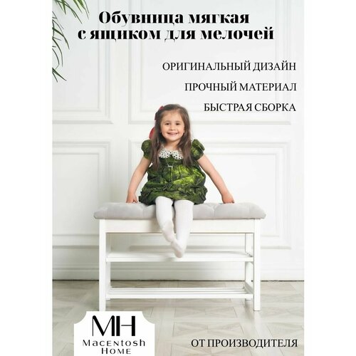Обувница, этажерка для обуви с сиденьем, скамья или галошница - отличный вариант для хранения обуви и повседневных вещей, а также удобный варианта для коридора, чтобы присесть, снять обувь и расположить ее на металлические полки. Вместительный ящик для хранения можно поместить акссесуары для обуви, зонт, ключи и любую другую мелочь. Компактные форма и размеры позволяют поставить обувницу не только в прихожей, но и в узком коридоре и на балконе, а также в гардеробной комнате и холле. Металлические полки для обуви это незаменимый предмет интерьера в квартире, в бане или на даче, который можно использовать в качестве банкетки, пуфика с ящиком для хранения в коридоре мелочей, документов, средств для ухода за обувью. Прочное сиденье с каретной стяжкой из приятного велюра у открытой обувницы обеспечит вам комфортное переобувание в гардеробной. Наши изделия подходят для интерьеров стиле лофт, классическом, современном, модерн. Полочки для обуви из металла с антикоррозионной порошгкой покраской с защитой от влаги белого цвета и коричненого цвета представлены в трех цветах. Так же у нас вы можете приобрести в комплект и другую деревянную мебель в прихожую: зеркало настенное, тумбу узкую, тумбу комод в прихожую под обувь (для обуви подставка) без мягкого сиденья, напольная вешалка, навесную вешалку. И у вас получится роскошный комплект в прихожую, но в современном стиле минимализм, лофт. Станет отличным подарком маме, папе, бабушке, дедушке, свекрови, другу и подруге на новоселье, день рожденье, или без повода порадовать дорогих людей. Наши изделия подходят для интерьеров стиле лофт, классическом, современном, модерн, минимализм. Ножки у обувницы выполнены из бука, полки из металла, ящик из качественного ЛДСП, а мягкое стеганное сиденье из роскошного и приятно велюра, который вы можете прочистить губкой или легкой влажной уборкой. Обувница стеганая с мягким сиденьем имеет следующие размеры: длина 830 мм, высота 520 мм, глубина 380 мм. Обувница с ящиком приходит в разобранном виде, но благодаря инструкции и всем необходимым креплениям ее очень легко собрать. С такой обувницей любая прихожая станет стильной, незабываемой. Кроме того, наша мебель прослужит Вам долго благодаря нашему особому подходу при создании и производтве мебели только из натуральных и качественных компонентов, чтобы дизайн и функциональность изделий были на высшем уровне по доступной цене. Наша мебельная фабрика и бренд Macentosh Home станет лучшим другом и приятным дополнением к Вашему дому.