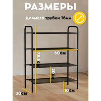 Обувница в прихожую Vidovito, этажерка металлическая универсальная, полка для обуви, 4 яруса, черная, 78,5*60*30 см: сравнение цен, характеристики, фото, актуальное наличие и цены.