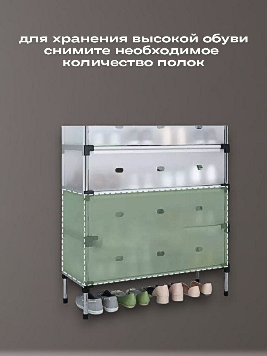 Это стильная, функциональная и вместительная этажерка для обуви. Полка легко расположится в комнате или спальне, коридоре или на веранде, в кладовой или гостиной и даже в шкафу. Хороший вариант и для офиса. Стеллаж состоит из 5 обувных полок. Полочки легко очищаются. Компактная, а значит поместится даже на балкон, в шкаф или гардеробную. Каркас - металлические трубки и пластиковые соединения. Закрытый каркас защитит от пыли и придаст обувнице аккуратный и эстетичный вид. Тумба достаточно устойчива. Имеет удобные ручки для перемещения. Легко собирается. Данная подставка подойдет и для сапог, вам достаточно только снять необходимое количество полок. Таким же образом вы можете и отрегулировать высоту! Прекрасное решение для организации порядка в доме или на даче! Обратите внимание-материал фасада напоминает материал папки для документов 220 мкм.