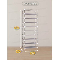 Универсальное и практичное решение для хранения обуви в вашем доме. Идеально впишется в прихожей, узком коридоре, гардеробной, кладовке, лоджии и даже на балконе или даче. Прекрасно подходит не только для обуви, но и для хранения одежды, белья, игрушек и даже рукоделия и пряжи. Т. е. это еще и гардеробная система. Благодаря металлическому каркасу с полками, отличается небольшим весом и мобильностью, что позволяет перемещать его в зал или на балкон без особых усилий. Тканевый чехол с откидной дверью на молнии защищает наполнение от пыли и посторонних глаз. Вы можете использовать конструкцию, как закрытый вариант, так и как открытый стеллаж этажерку. Тряпичные полки рассчитаны на нагрузку не более 3 кг. Подставка для обуви сборная, складная, трансформер. Сборка без инструментов. Вы можете собрать любую высоту, которая вам необходима. Достаточно высокая, что позволяет хранить большое количество обуви. Легко складываются, а значит пригодятся и во время ремонта, при переезде, в командировке или в путешествиях. Отличный способ организовать пространство и обеспечить порядок в вашем доме, не тратя при этом много средств! Практичное и бюджетное решение, которое обеспечит максимальную функциональность и практичность.