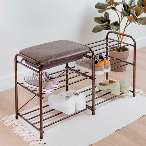 Обувница ЗМИ, Этажерка для обуви «Альфа 33СЯ», 3 полки, с сиденьем, на 10 пар обуви, 87х30х48 см, цвет коричневый: сравнение цен, характеристики, фото, актуальное наличие и цены.