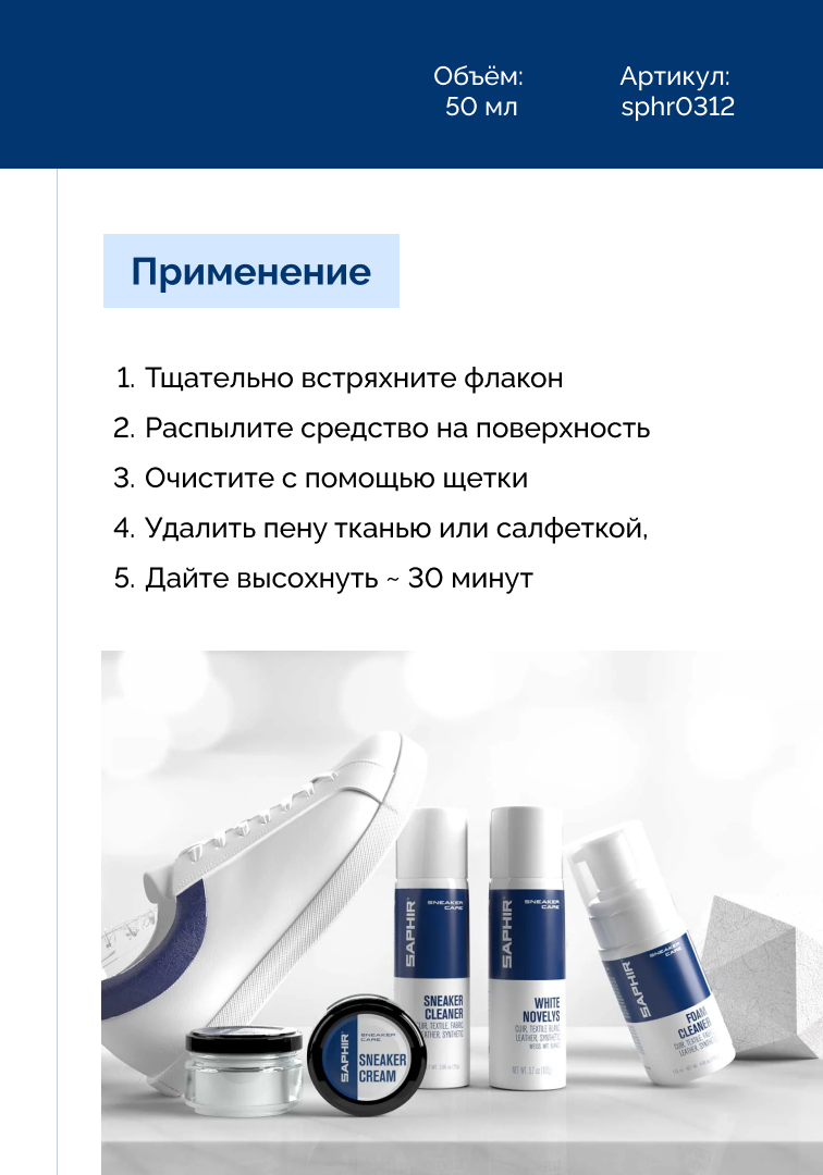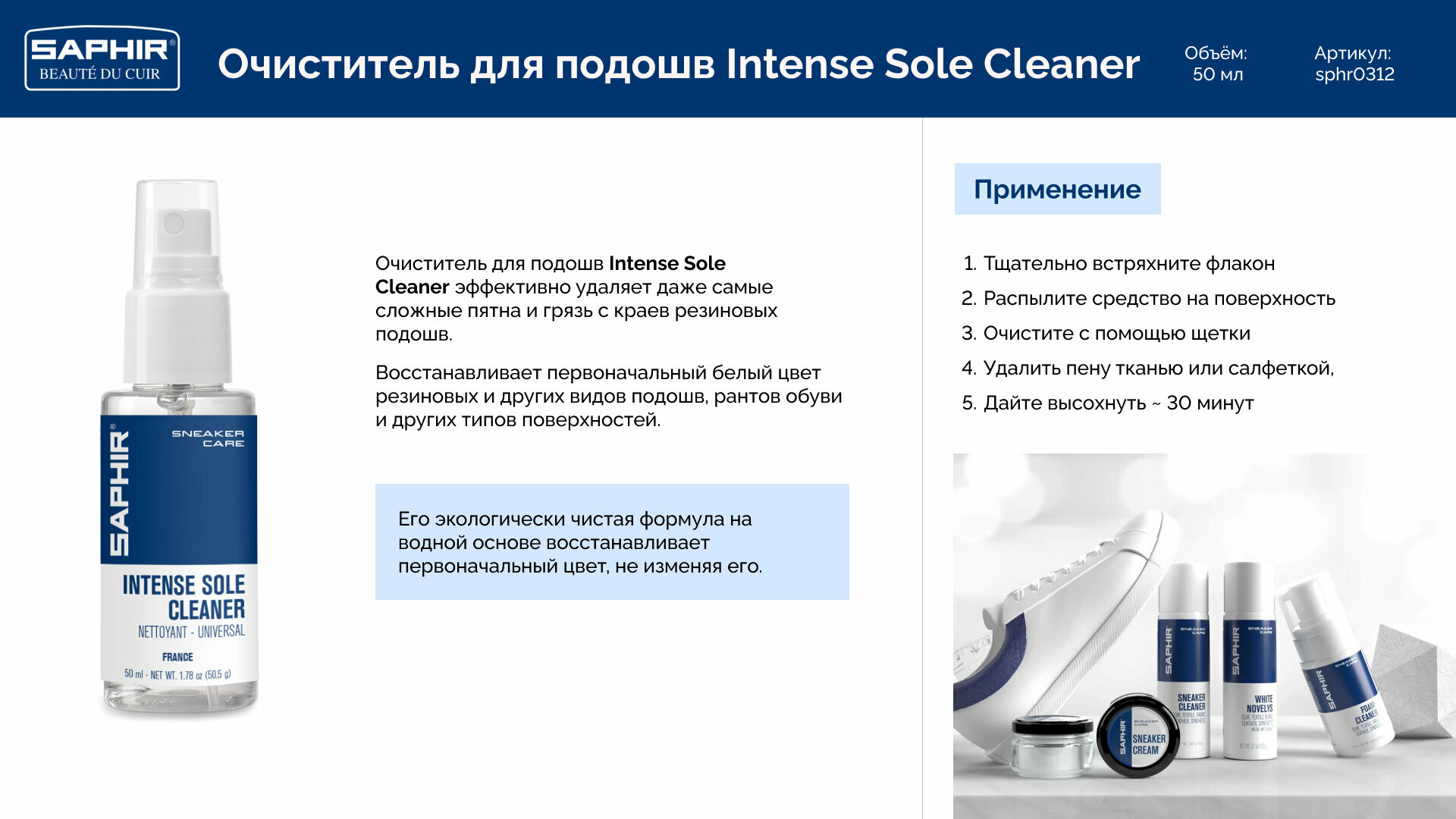 Очиститель для подошв кроссовок SAPHIR Sneaker INTENSE SOLE CLEANER, объем 50 мл: сравнение цен, характеристики, фото, актуальное наличие и цены.