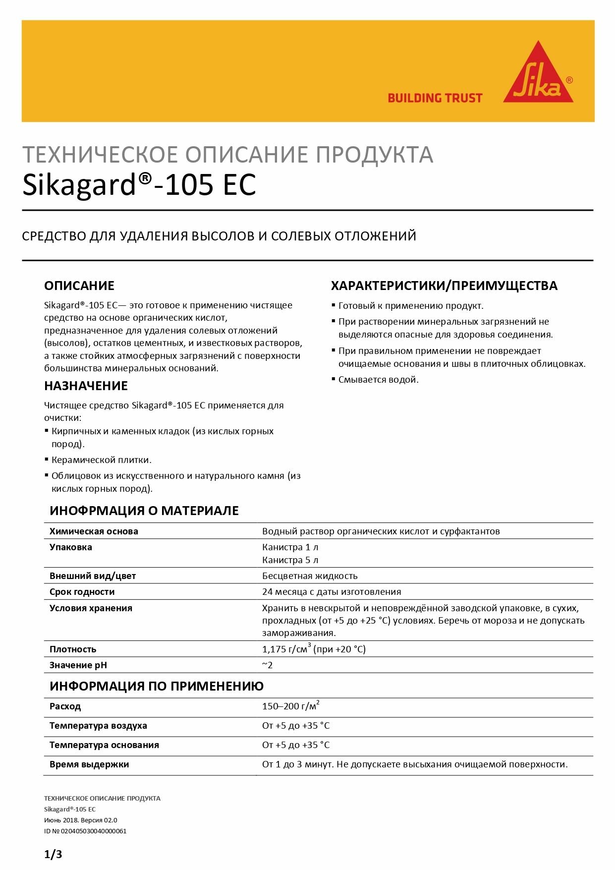 Купить Очиститель фасадов и тротуарной плитки Sikagard-105 EC, 5 л с доставкой по всей России. Очиститель фасадов и тротуарной плитки Sikagard-105 EC, 5 л: сравнение цен, характеристики, фото, актуальное наличие и цены.