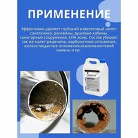 Средство развести водой в соотношении от 1:3 до 1:10 (в зависимости от толщины отложений). Нанесённый на загрязнённую поверхность препарат растворяет отложения в течение 20 - 30 мин. Подогрев рабочего раствора до 70°С увеличивает эффективность очистки. После применения средства поверхность обильно промывается водой. При обработке изделий из мягких металлов и их сплавов желательно предварительное тестирование. Для достижения наилучшего эффекта оптимальная концентрация подбирается технологическим путём, так как необходимо учитывать характер загрязнений и условия применения препарата.