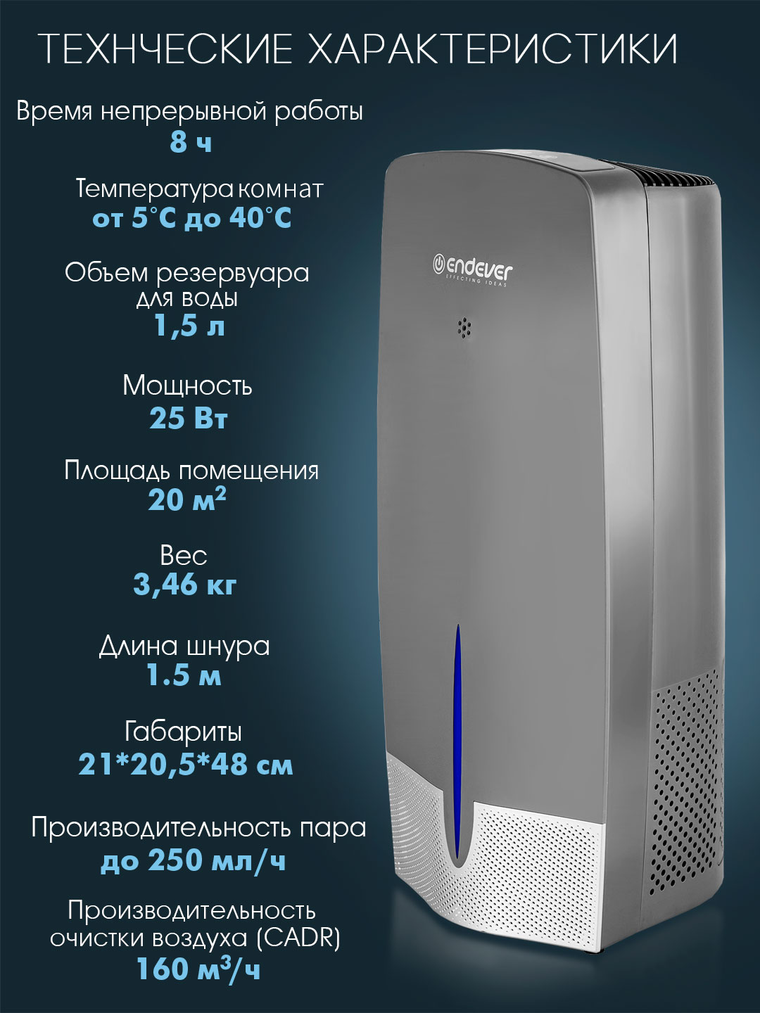 Очиститель-увлажнитель ENDEVER Oasis-320, ультразвуковой, 250мл/ч, до 20 м2: сравнение цен, характеристики, фото, актуальное наличие и цены.