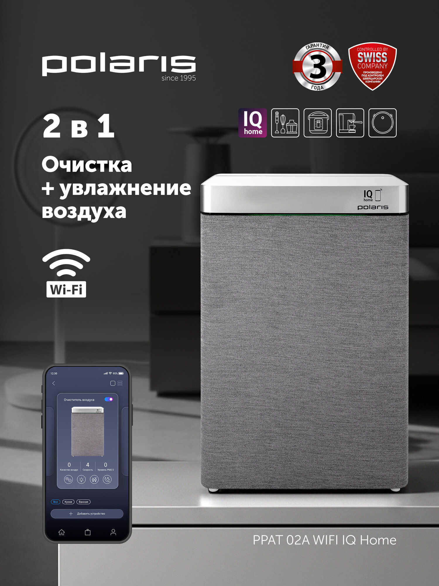 Купить Очиститель + увлажнитель воздуха 2 в 1 PPAT 02A Wi-Fi IQ Home с доставкой по всей России. Очиститель + увлажнитель воздуха 2 в 1 PPAT 02A Wi-Fi IQ Home: сравнение цен, характеристики, фото, актуальное наличие и цены.
