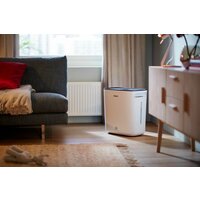Устройство «2 в 1», включающее функции воздухоочистителя и увлажнителя, очищает воздух в помещениях со скоростью 175 м³/ч и быстро увлажняет его со скоростью 580 мл/ч. Благодаря датчику влажности и фильтру HEPA устройство автоматически регулирует требуемый уровень влажности в процессе очистки воздуха.