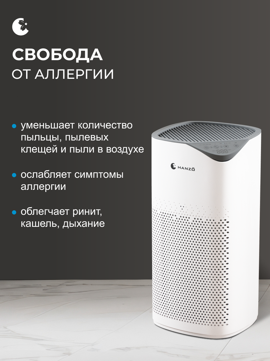 HANZO Z18 подходит для спальни и детской, его можно включать в ночное время. У очистителя предусмотрен спящий режим, в котором устройство работает очень тихо. Уровень шума не превышает 25 дБ.