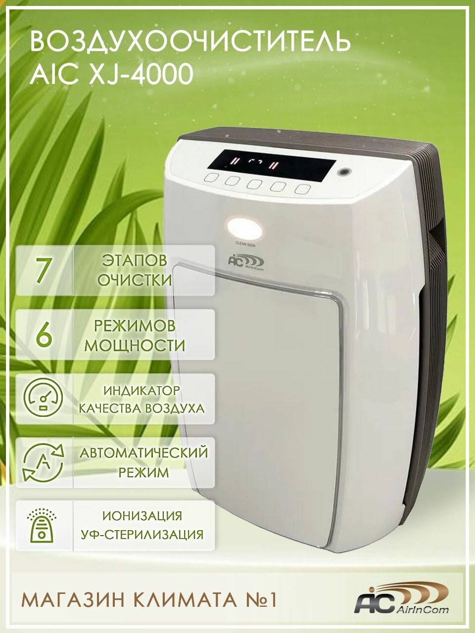 Очиститель воздуха AIC XJ-4000 рассчитан на помещение до 50 квадратных метров. В конструкции этой высокоэффективной модели использована семиступенчатая система очистки воздуха. Она включает в себя, наряду с традиционными, фильтром предварительной очистки, противоалергенным HEPA-фильтром, карбоновым (угольным) фильтром, ультрафиолетовой лампой, еще и ионизатор воздуха, а также фотокаталитический и электростатический фильтр. В результате достигается не только высокая степень очистки воздуха, но и снижается количество респираторных заболеваний у людей, находящихся в помещении. Кроме того, отмечается улучшение самочувствия людей, которые живут или работают в помещениях, где установлен очиститель. Он может быть использован и в офисном помещении, и в квартире – в том числе спальне или детской. Очиститель воздуха AIC XJ-4000 предназначен для того, чтобы обеспечить создание комфортабельного и здорового микроклимата в помещении. Он отличается максимальной эффективностью в применении, благодаря тому, что всасываемый поток воздуха проходит через 7 этапов очистки. В результате из него удаляется не только пыль, но и пыльца растений, различные виды аллергенов, уничтожаются болезнетворные бактерии, формальдегиды, а также устраняются неприятные запахи, в том числе и запах табака. Работа воздухоочистителя может осуществляться в одном из шести режимов мощности. Дополнительное удобство при его использовании достигается благодаря наличию индикаторов качества воздуха на различного рода загрязнения в помещении. Очиститель без труда определит наличие в воздухе пыли, аллергенов и посторонних запахов. Также, встроенные датчики сообщат о необходимости чистки или замены фильтров. Система очистки воздуха AIC XJ-4000 Фильтр предварительной очистки: Задерживает наиболее крупные частицы, такие как волосы, перхоть, шерсть, крупные частицы пыли, содержащиеся в воздухе. Электростатический фильтр: (плазменный фильтр): При электростатической фильтрации поток воздуха сначала проходит через ионизатор, заряжающий отрицательно содержащиеся в воздухе частицы дыма и пыли. Далее воздух поступает в статический фильтр (набор положительно заряженных пластин), которые притягивают к себе заряженные отрицательно частицы. Отрицательно заряженные частицы пыли прилипают и остаются на пластинах плазменного фильтра. Нера фильтр класса Н14: Самый максимальный класс по классификации фильтров высокой эффективности согласно ГОСТ Р 51215-99. Нера фильтр отличается высокой эффективностью и предназначен для очистки воздуха от мельчайших частиц. Эффективно отделяет взвешенные частицы и задерживает вирусы, плесень и любые виды бактерий. Способен очищать воздух от частиц размером от 1 до 3 микрон и задерживать до 99,97% подобных частиц. Кроме того, нера фильтр задерживает до 80% частиц, размер которых составляет от 0,3 микрона. Данный фильтр позволяет практически избавиться от аллергенов, пыльцы, мелких частиц пыли в воздухе, перхоти людей и животных, бактерий, и др. Оказывает положительное.
