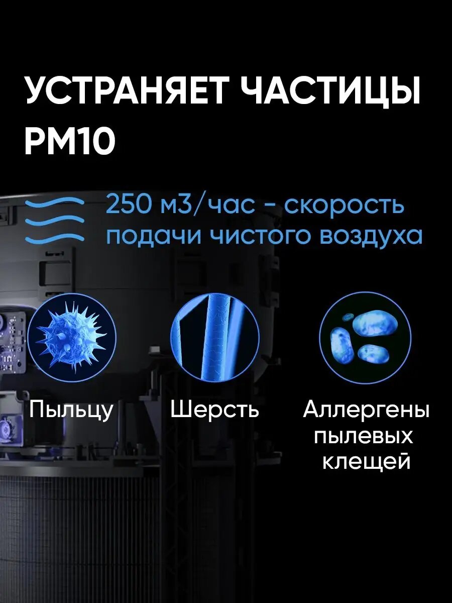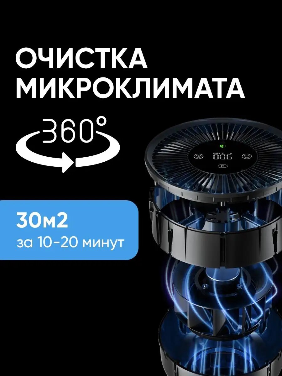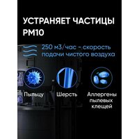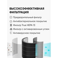 Двухцелевой лазерный датчик контролирует качество воздуха в помещении. Фильтр HEPA удаляет до 99,98% частиц на площади до 80 кв. метров. Поддержка трех систем умной очистки в домашних условиях. Тщательная и эффективная очистка воздуха всего за 6,5 минут.