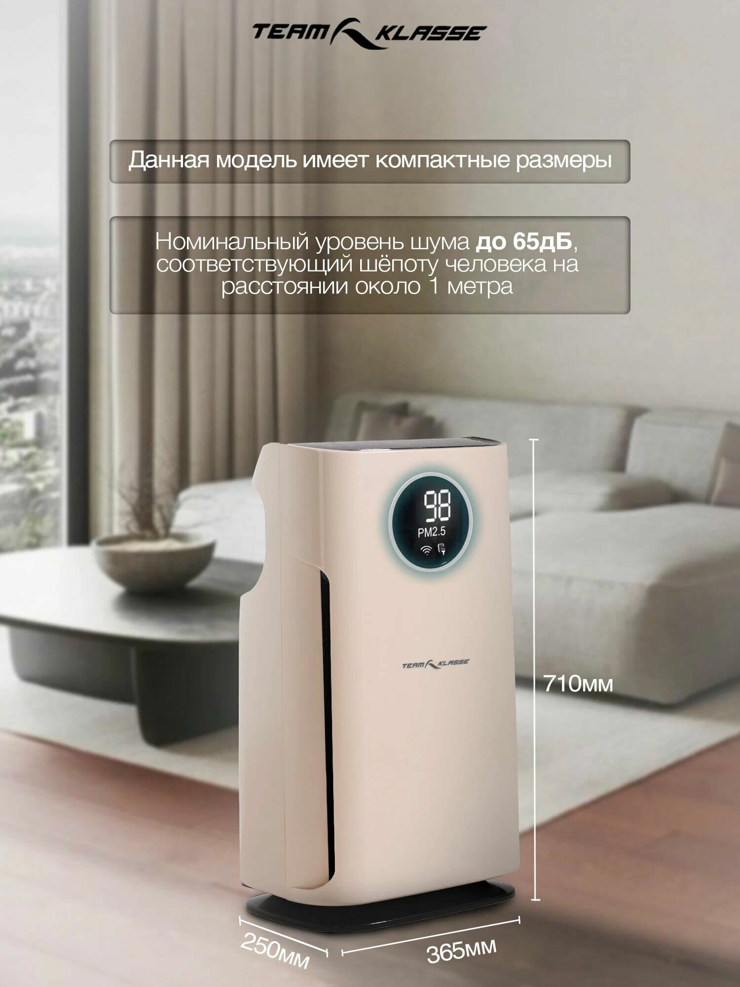 Очиститель воздуха от Team Klasse JH-901 - ваш надежный помощник в борьбе с пылью, неприятными запахами и аллергенами в вашем доме. Этот устройство предлагает эффективную очистку воздуха благодаря комбинированному типу очистителя, включающему угольный и HEPA-фильтры. С его помощью вы можете наслаждаться чистым воздухом в любой комнате, где установлен очиститель. Два современных фильтра. Нера 13 удерживает пыльцу, споры грибков, бактерии, улавливает до 99,97% вредных микрочастиц. Угольный фильтр ликвидирует запахи, справится с формальдегидом и выхлопными газами. Функция ионизации нейтрализует электростатические поля, помогает бороться с пылью, облегчает влажную уборку. Идеально для владельцев животных: значительно уменьшает количество «летающей» шерсти. Компактная и практически бесшумная бытовая техника: уровень шума до 65 дБ(А), как шепот человека на расстоянии метра. Индикация режима работы, качества воздуха и температуры дает полный контроль над процессом очистки. Используйте в помещении до 43 м². Есть ночной режим без подсветки и функция блокировки для защиты от детей. Выбирая очиститель воздуха от Team Klasse, вы выбираете качественное и надежное решение для поддержания чистого воздуха в вашем доме. Гарантия 1 год.
