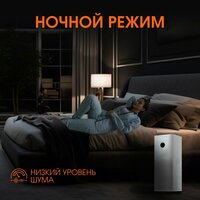 - Модель отличается высоким показателем CADR, достигающим 360 м³/ч, что позволяет ей за минуту непрерывной работы очищать до 6000 литров воздуха. Благодаря высокой скорости очистки, чистота воздуха в доме будет держаться как можно дольше.