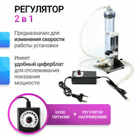 | Подробная комплектация | Фильтрующая установка в сборе – 1 шт., трубка силиконовая 7 мм. (прозрачная) 1 метр – 1 шт., трубка силиконовая 8 мм. трубка силиконовая 7 мм. (прозрачная) 1 метр – 1 шт., дополнительный комплект фильтр-шайб и уплотнительное кольцо – 1 шт., регулятор напряжения - 1 шт. |