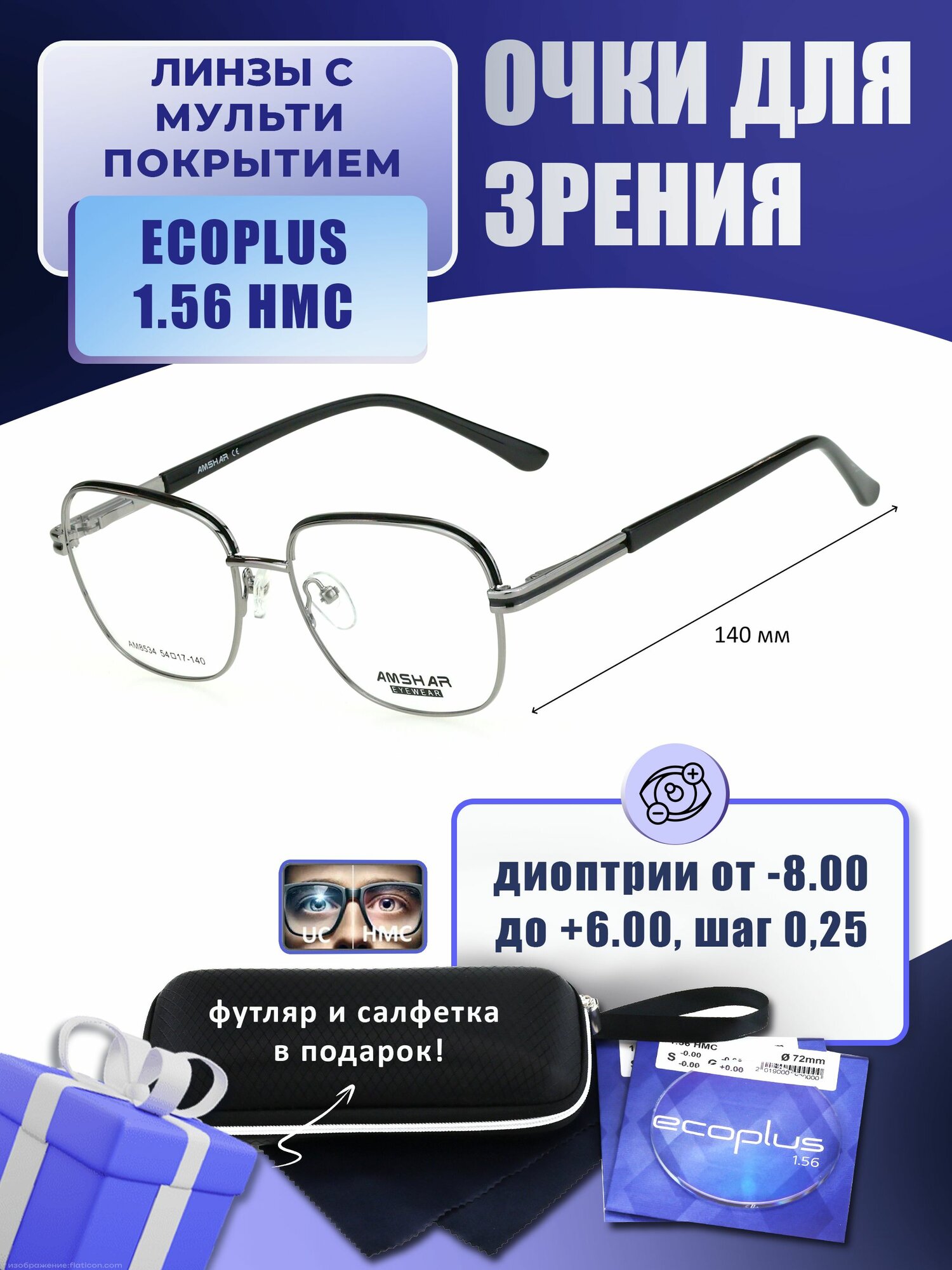 Купить Очки для дали с футляром-змейка AMSHAR мод. AM8534 Цвет 6 с линзами ECOPLUS 1.56 HMC -6.50 РЦ 62-64 с доставкой по всей России. Очки для дали с футляром-змейка AMSHAR мод. AM8534 Цвет 6 с линзами ECOPLUS 1.56 HMC -6.50 РЦ 62-64: сравнение цен, характеристики, фото, актуальное наличие и цены.