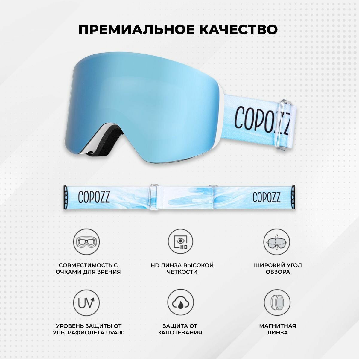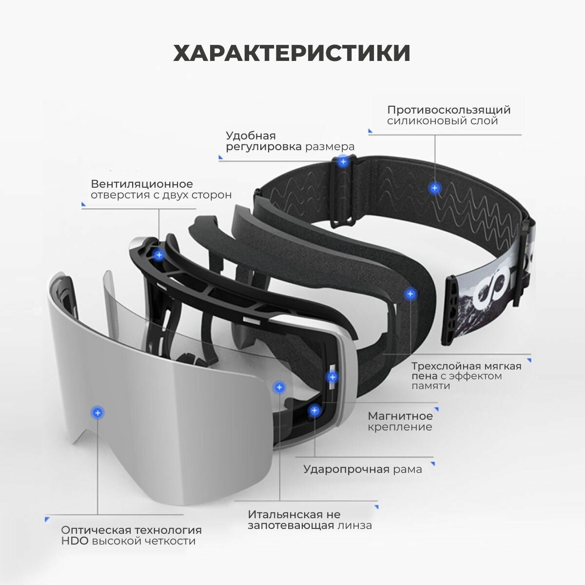 Особенности горнолыжных очков Copozz включают в себя: – Магнитная линза обеспечивает быструю и легкую смену линз для различных погодных условий; – Технология UV400 защищает глаза от вредного ультрафиолетового излучения; – 100% защита от тумана и запотевания благодаря двойной вентилируемой системе; – Гибкая и ударопрочная оправа обеспечивает комфорт и долговечность; – Регулируемый ремешок для идеальной посадки на голове. Эта горнолыжная маска станет отличным выбором для тех, кто ценит комфорт, стиль и функциональность в одном продукте. Независимо от того, катаетесь ли вы на лыжах, сноуборде или просто наслаждаетесь зимними пейзажами, горнолыжные очки Copozz обеспечат вам защиту и комфорт на протяжении всего дня.