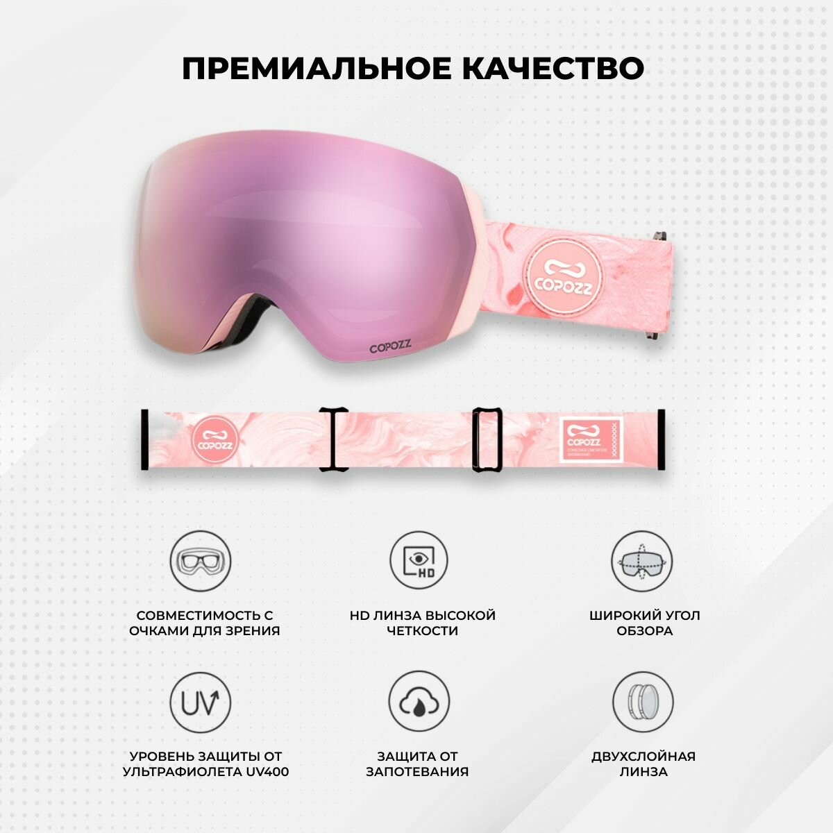 Купить Очки горнолыжные маска для сноуборда сноубордические COPOZZ розовая GOG 21101 TJ с доставкой по всей России.